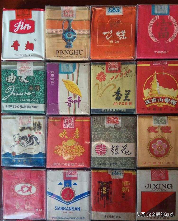 壯麗、廬山、海鳥、歡騰、蜜蜂、玉兔、愛民、經濟、鳳凰、大前門、三門峽、百花洲、許昌、恒大、芒果、桂花、奔馬,熊貓,荷花,合作,大生產,飛馬,鳳凰,牡丹,紅雙喜,金絲猴,銀象,釣魚臺,蝴蝶泉,紅梅,鷹牌,小牡丹,勝利,建設,牡丹,友誼,金葫蘆,迎春,紅塔山。阿詩瑪,大重九,大前門,大鐵橋,大豐收,中華,茉莉花,玉蘭,團結,恒大,黃金葉,墨菊,北安橋,黃河,豐收,前進…………我都吸過,奇怪的是,長大了,居然不吸煙了…………