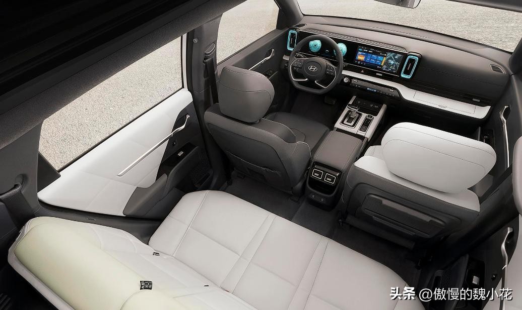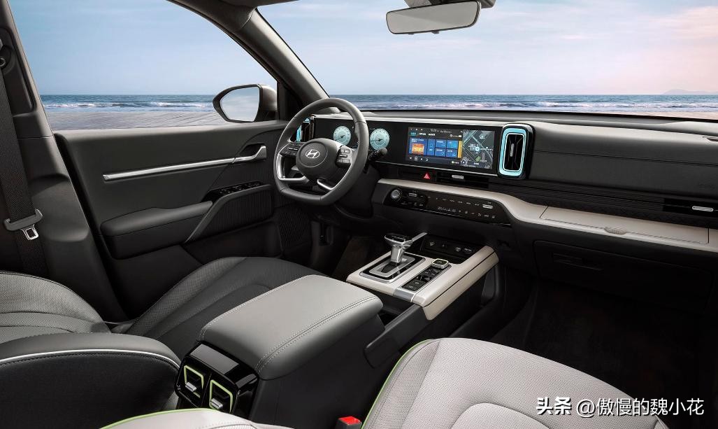 其實從外觀就已經給這款車的內飾奠定了基調,自然而然對它的內飾充滿了期待!對比現款的IX35,內飾的科技元素有了質的飛躍。顯示區為大尺寸懸浮液晶屏,與目前的現代的旗艦版車型保持一致,整個的空調出風口也采用了縱向的設計,而且在周圍還加入了更多裝飾性材料,顏值和質感都得到了兼顧!扶手箱前端區域有著精致的換擋區域和實體功能按鍵,所采用的方正元素與它的中控臺也正好形成呼應!