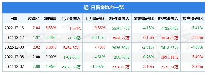 近5日資金流向一覽見下表: