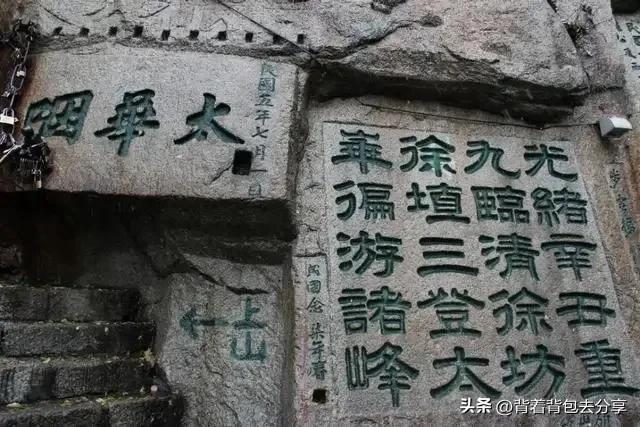 千尺幢:是徒步攀登的第一個險,上方為一線天,向下望去,如深井形如裂隙,四壁直立,鑿石為梯,有太華咽喉摩崖石刻,極其形象的說明了這里的山路,是多么險峻