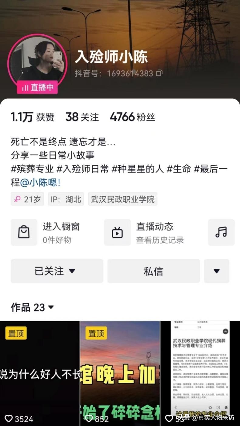 [email protected],2001年出生在湖北恩施,是武漢民政職業學院一名在校生,目前是實習殯葬師,人稱為遺體美容師。