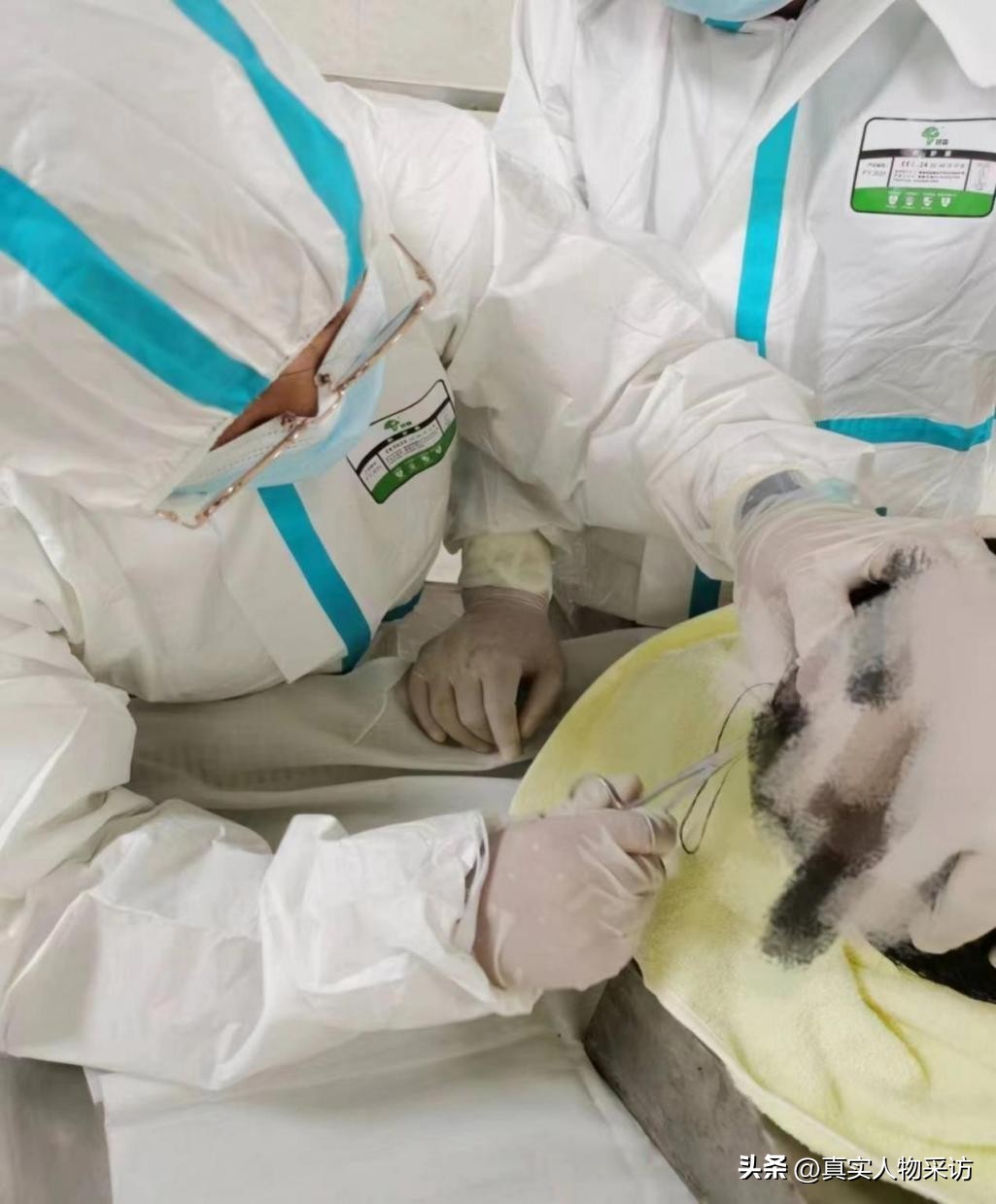 那位逝者是因車禍去世,頭部已被撞的嚴重變形。化妝時,老師傅剛好忘了戴眼鏡,不好做縫合操作。于是,我鼓起勇氣,主動請纓,便和師傅說:“讓我來吧!”
