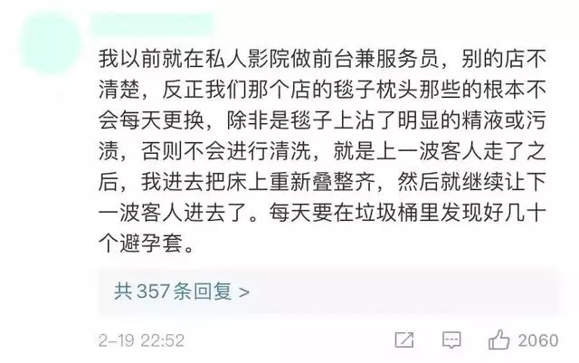 由于不需要出示身份證,又可以提供住宿,因此私人影院就成了一些情侶的天堂,花著比賓館低的價格,卻享受著和賓館同等或者更好的待遇。