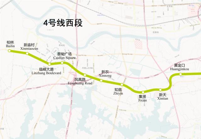 武漢地鐵4號線一期、二期工程已經是貫通三區的線路,西延伸段還將通向蔡甸區,成為貫通武漢市四個市轄區骨干線。