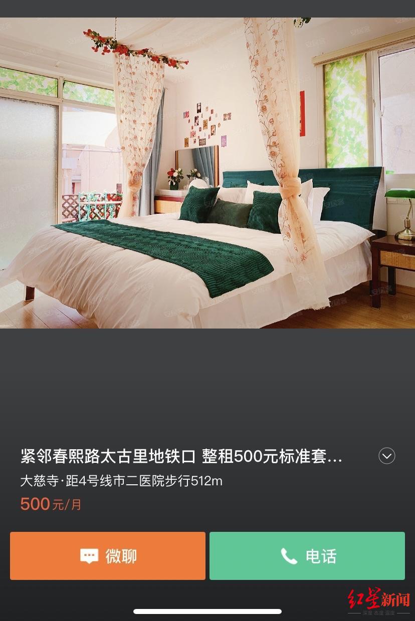 4月27日,記者搜索58同城、安居客等房源APP,發現平臺上有大量裝修精致、價格低廉的房源。例如在58同城上,成都市錦江區市二醫院地鐵口的紅星國際小區內45平米的套一,租金1000元/月;在安居客上,房源圖片看起來十分精致,且“緊鄰春熙路太古里”,40平米的套一僅需500元/月。而同為紅星國際小區內的另一套38平米的套一房源,在另一個房源鏈接中,價格就為2400元/月。相比之下,上述“價廉物美”的房源頗有吸引力。為何同一小區,租金相差如此之大呢?