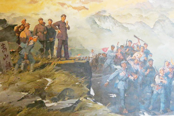 正是因為覺得這場勝利非常值得驕傲 ,所以在這里對“重頭越”做了一次重復處理。任你是銅墻鐵壁,險要雄峻,我們紅軍戰士有無堅不摧的意志,殺個回馬槍,又把它打回來了。