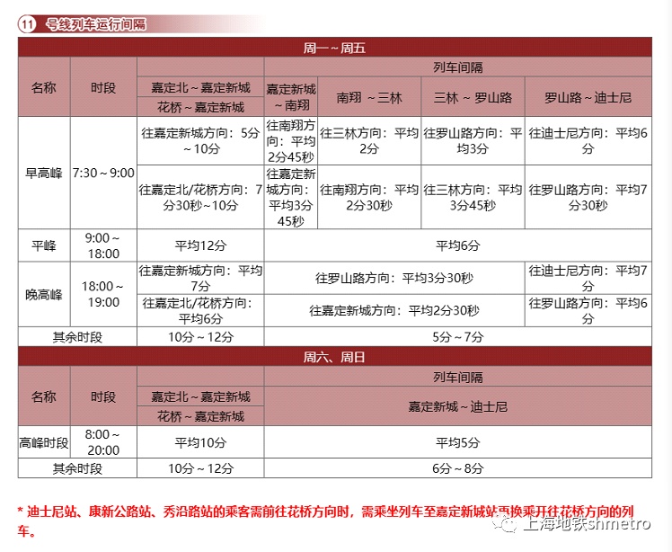 注意啦!!需要到花橋站換乘上海11號線的小伙伴,也要關注下上海11號線的首末班車時間哦!