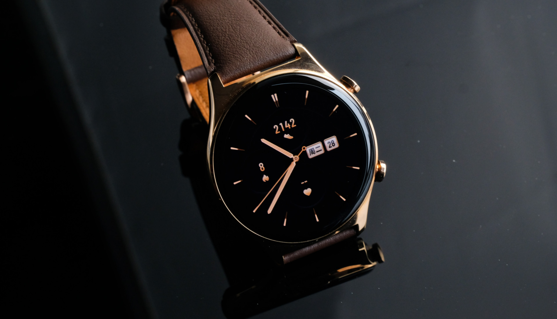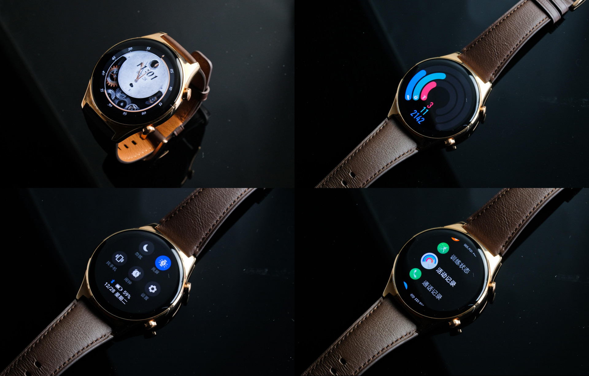 之前用這類智能手表總有種運動感、科技感偏強而手表本身那種裝飾屬性不足的感覺,而一上手榮耀手表GS 3就能體會到一種與眾不同的精致感,尤其是我們手上這款「流光經典」配色。