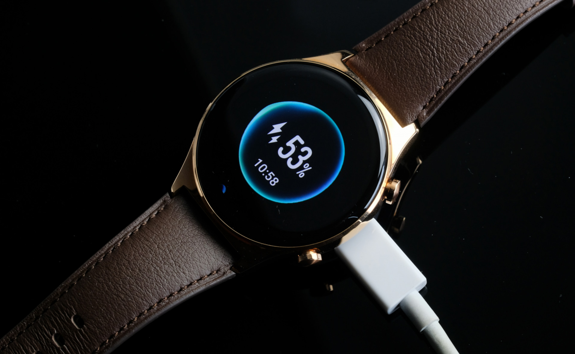 充電方面,榮耀手表GS 3配備了支持快充的磁吸式充電器(接Type-C口),我們也進行了一番簡單的測試,起始電量10%,10分鐘可充至38%,30分鐘充至78%,45分鐘充至90%。官方標稱0——100%充電時長為55分鐘左右,充電5分鐘可用一整天,實測下來大致是符合這個水平的。