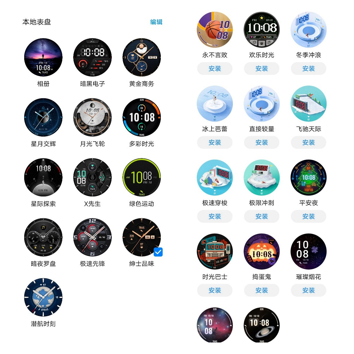 一款智能手表每天接觸最多的不是各式各樣的功能,而是抬手就能看到的表盤,這也是決定手表顏值高低的一部分。榮耀手表GS 3本地預裝了12款表盤,既有偏商務風格的,也有偏運動或科技品味的,當然表盤市場中還有上百款風格各異的表盤可供選擇。
