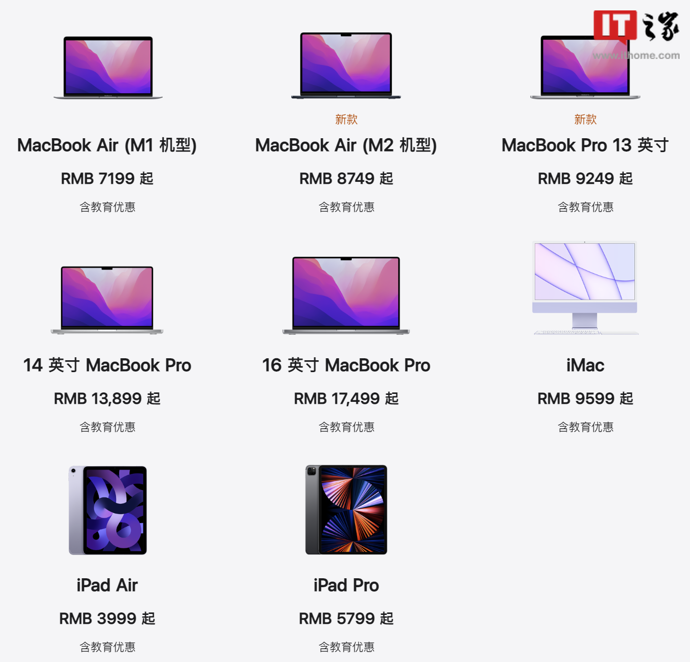蘋果官網顯示,蘋果部分產品含教育優惠售價如下: