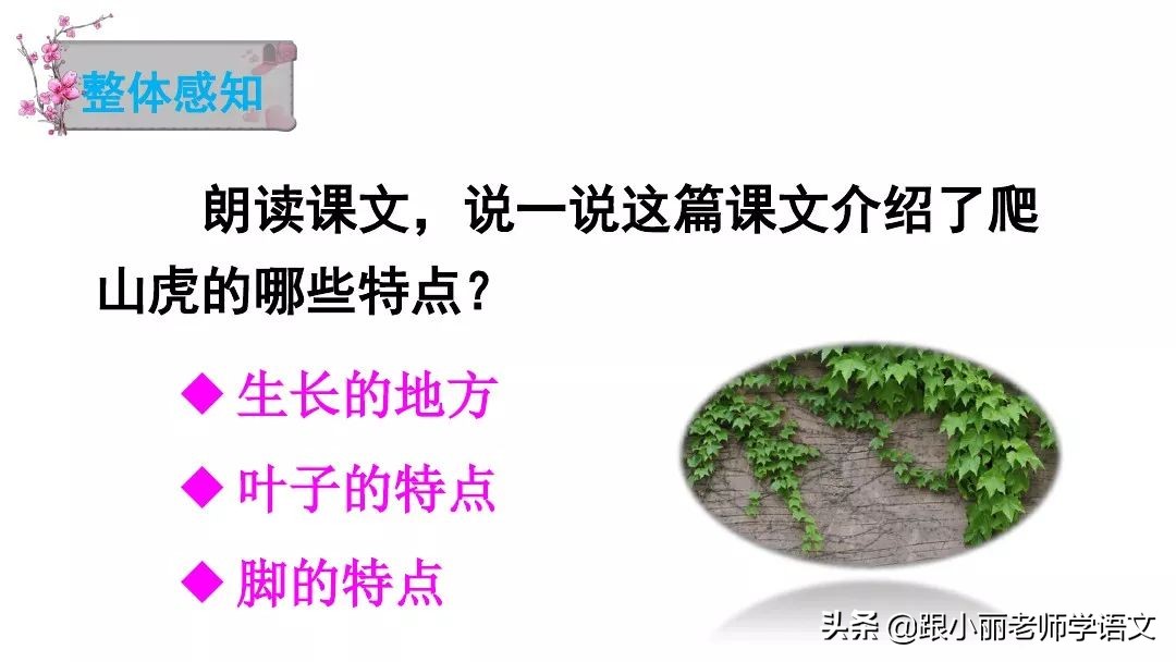2.整體感知課文內容,梳理課文結構,初步了解爬山虎的特點。