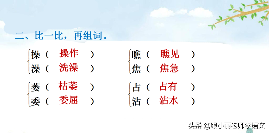 二、站著 粘貼 嫩綠 洗漱 瞧見 焦急