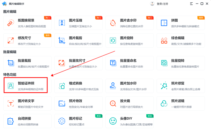 這是一款在電腦上操作的專門用于圖片的編輯軟件,具備專業全面的圖片處理功能,支持為證件照換底色、改尺寸,提供多種底色和常規證件照尺寸如1寸、大小1寸、小2寸、2寸等規格,可根據需要進行修改。