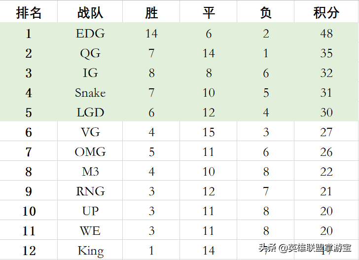 在2015年LPL所有的12支隊伍中,筆者認為前5支隊伍是具有“國際競爭力”隊伍,也就是EDG、QG、Snake、LGD、IG。占總體比例大約是41.6%。
