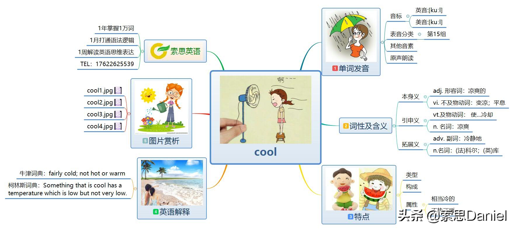 導讀cool [ku?l] adj. 涼爽的英英解釋fairly cold; not hot or warmcool的特點相當的冷,不熱也不溫暖(fairly cold; not hot