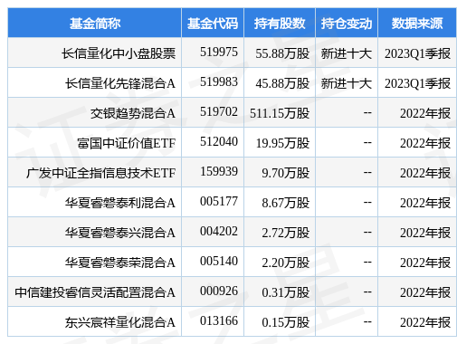 根據2023Q1季報公募基金重倉股數據,重倉該股的公募基金共2家,其中持有數量最多的公募基金為長信量化中小盤股票。長信量化中小盤股票目前規模為7.43億元,最新凈值1.341(5月9日),較上一交易日下跌1.4%,近一年下跌1.76%。該公募基金現任基金經理為左金保。左金保在任的基金產品包括:長信醫療保健混合(LOF)A,管理時間為2015年3月13日至今,期間收益率為96.21%;長信量化先鋒混合A,管理時間為2015年3月13日至今,期間收益率為68.94%;長信電子信息量化靈活配置混合A,管理時間為2016年7月27日至今,期間收益率為-0.3%。