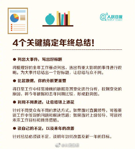 轉眼又要年底了,你梳理過今年做的工作嗎?一個好的年終總結,意味著一年的工作完美收官。準備年終總結的過程,不僅能幫你整理這一年來的收獲與不足,還能督促你在年末繼續沖刺!如何寫好年終總結(人民日報)