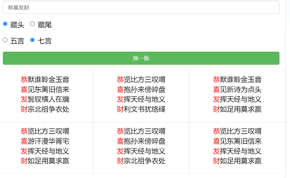 然后,輸入您想編輯的“頭”,例如,張三祝您新年快樂,即可在線生成藏頭詩,五言或七言自由選擇,還可以自動生成藏尾詩,樂趣多多,心意滿滿?