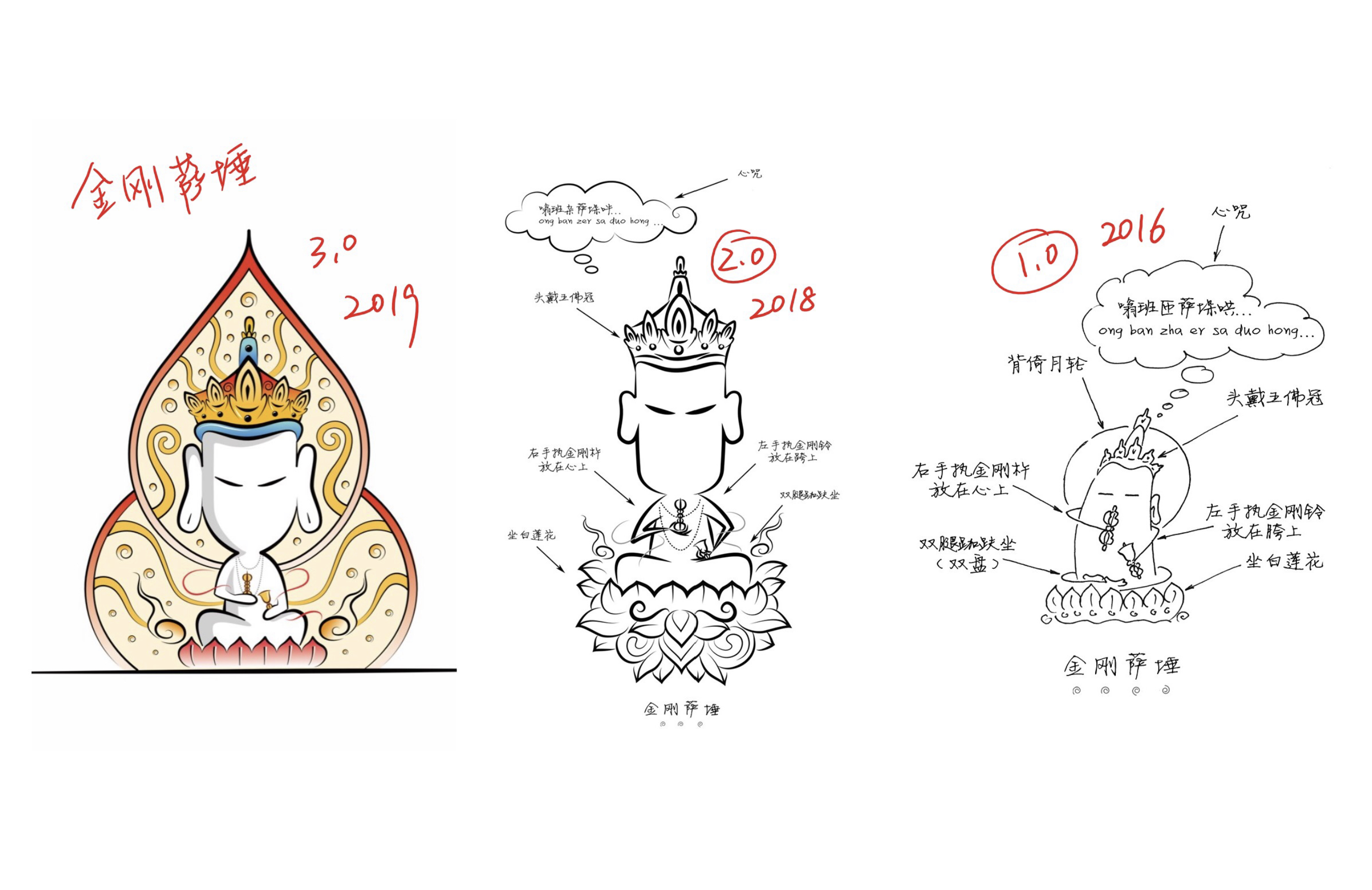 前述:金剛薩埵菩薩,是我們漫話佛學平臺自成立之初,用漫畫形式介紹的第一位菩薩,從第一版形象到現在已經改版了三次,每一次重新畫,都會發現之前的缺點,也正因為如此,才使我有了不斷完善的動力