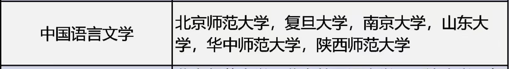 中國語言文學:北京師范大學、復旦大學、南京大學、山東大學、華中師范大學、陜西師范大學。