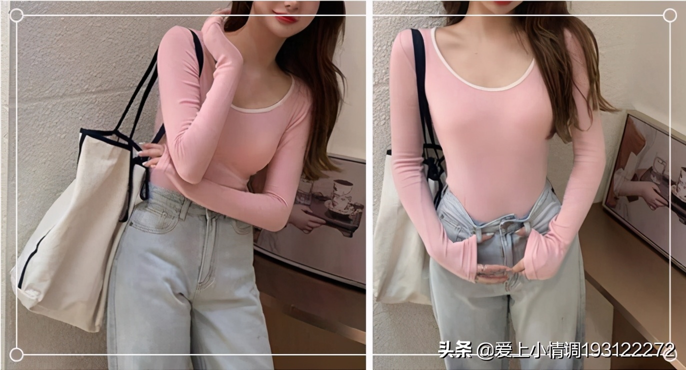 灰色就像黑白色那樣經典不過時,所以灰色也是可以與粉色搭配的,看起來給人滿滿的時尚感哦。粉色的修身長袖上衣穿起來很可愛減齡,下身搭配慵懶隨性的灰色牛仔褲,這兩種不同的風格組合在一起,效果很不錯哦!
