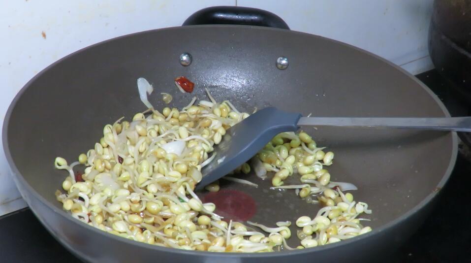 2、炒黃豆芽一定要用大火爆炒,這樣口感更加脆爽