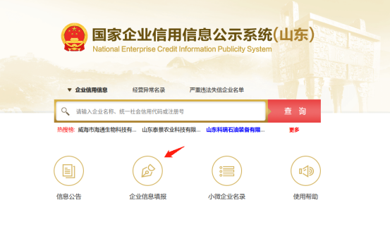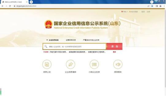 第一步:在瀏覽器中輸入“國家企業信用信息公示系統(山東)”網址(http://sd.gsxt.gov.cn/index.html),進入地區公示系統主界面。