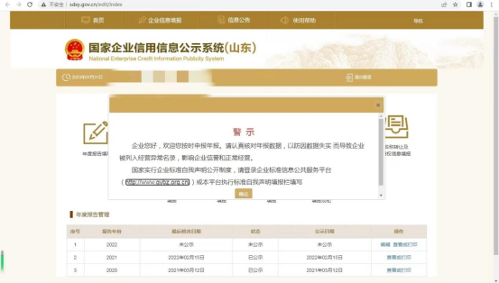 第六步:企業確認登錄成功后,系統將自動跳轉到年報填報界面,即可進行年報填寫、公示信息填報等操作。