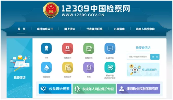 12309中國檢察網是由最高人民檢察院上線的集案件信息公開、辦事服務、監督意見等功能為一體,構建案件信息公開、網上信訪等七大塊、二十五項具體功能的“一個窗口”對外服務平臺。