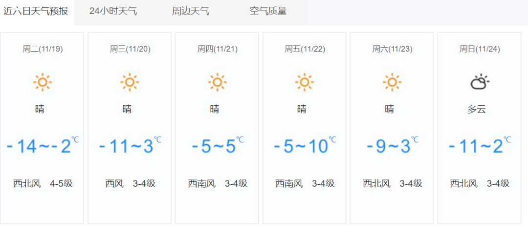 阿旗的天氣降到了-5℃以下