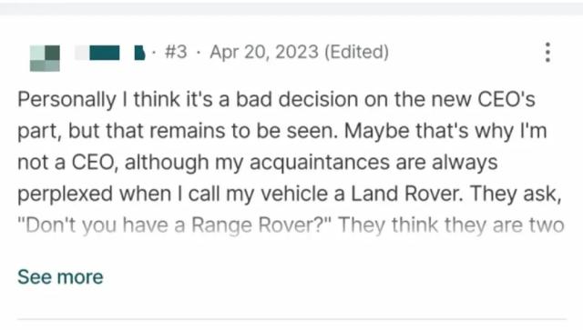 “我個人認為新CEO的決定是錯誤的,但還有待觀察。”網友表示,盡管會稱自己的車輛為路虎,我的朋友們總感到困惑,他們會說,你沒有攬勝嗎?他們會認為這是兩個品牌。