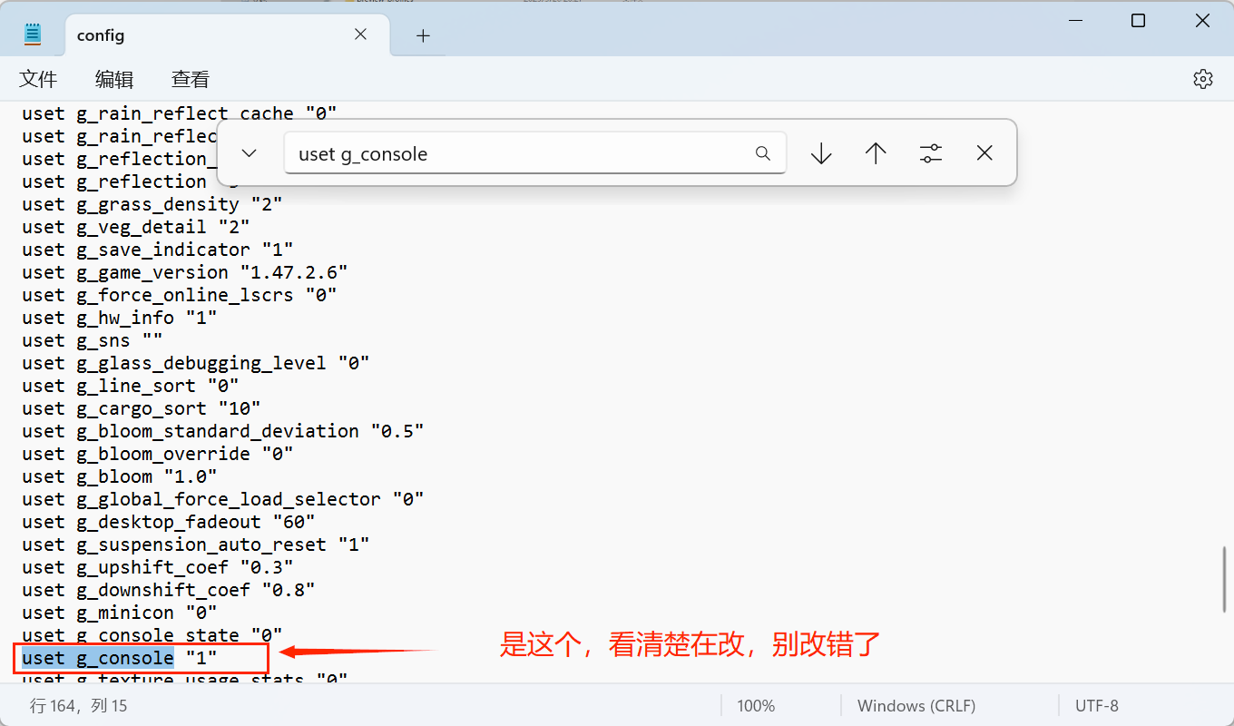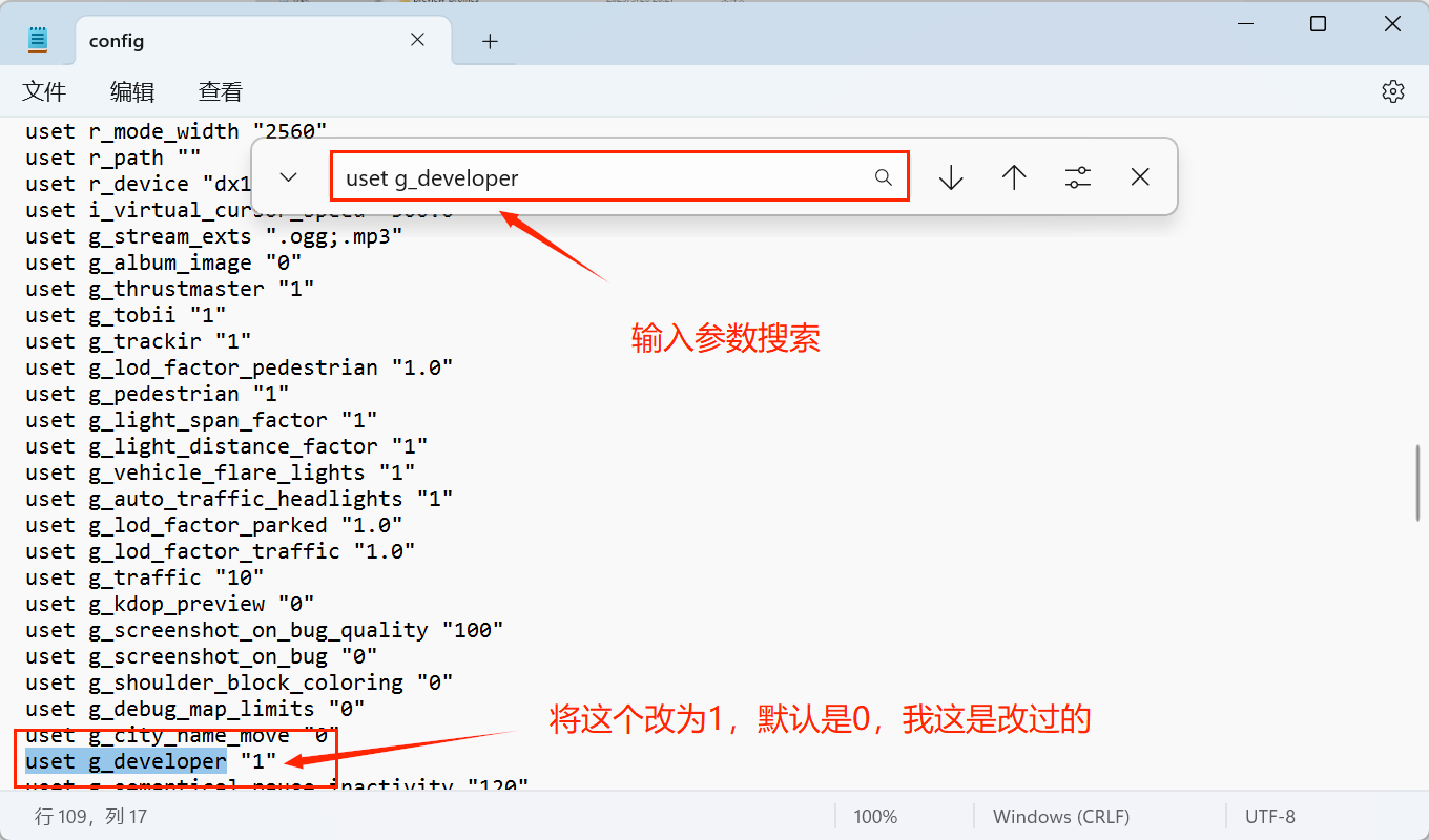 3、“Ctrl+F”打開搜索,輸入以下兩個參數,將參數后面的0改為1: