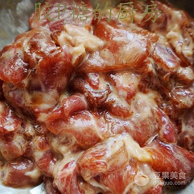 1、將豬瘦肉切大片,用少許醬油、白糖、姜汁(或姜水)、鹽入味20分鐘。