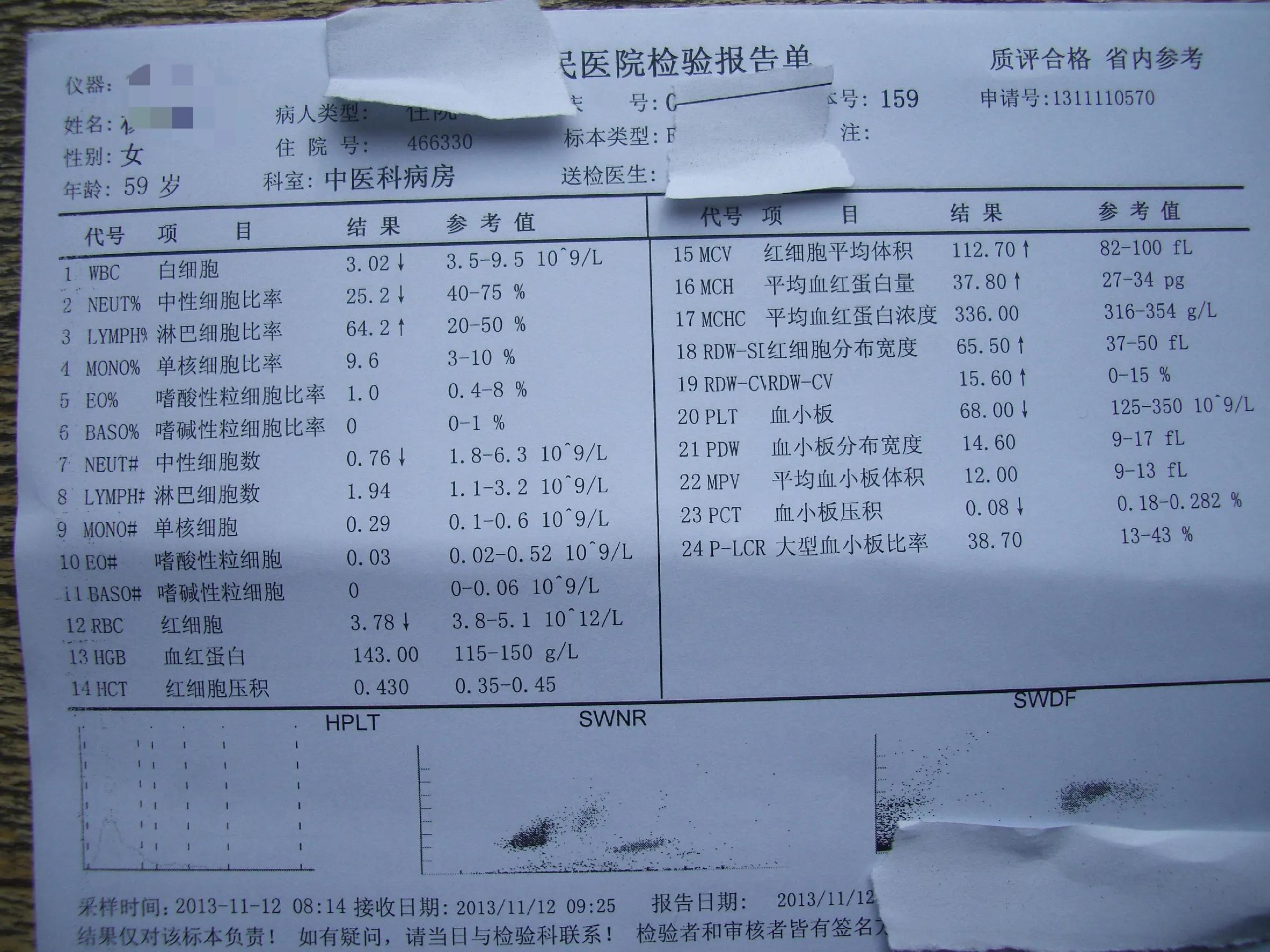 正常成年男性紅細胞計數約4.0--5.5×1012/L,女性3.5--5.0×1012/;紅細胞內有血紅蛋白,也就是血色素,男性:120--160g/L,女性:110--150g/L。如紅細胞或(和)血紅蛋白量減少,稱“貧血”。