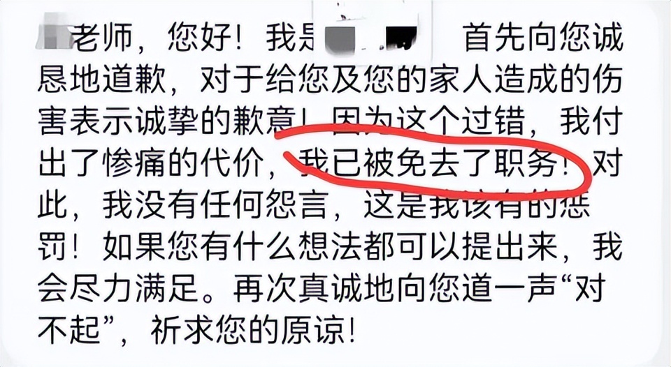 被發現之后,卓處長自知理虧。如果丁女士和兒子不肯息事寧人,這件事情鬧大了,對自己一點好處沒有。于是卓處長打來求饒電話,只要不將這件事情公開,自己愿意給予補償。很明顯卓處長是想拿錢保平安。他也害怕自己的職位丟了,畢竟自己能到今天,也是通過奮斗得來的。