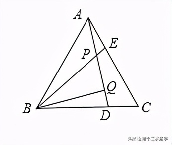 分析:根據全等三角形的判定方法SAS可證得△BEC≌△ADB,根據各角的關系及三角形內角、外角和定理可證得∠BPQ=60°,即可得結論.