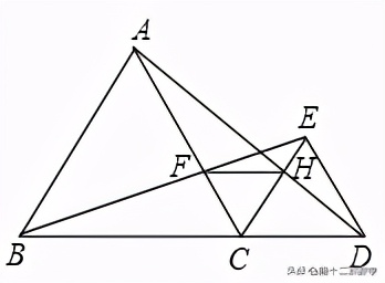 第2問:由(1)知△BCE≌△ACD,可知∠CBF=∠CAH,BC=AC,再由ASA定理可知△BCF≌△ACH,可得出CF=CH,根據∠FCH=60°,可知△CHF為等邊三角形,進而可得出結論.