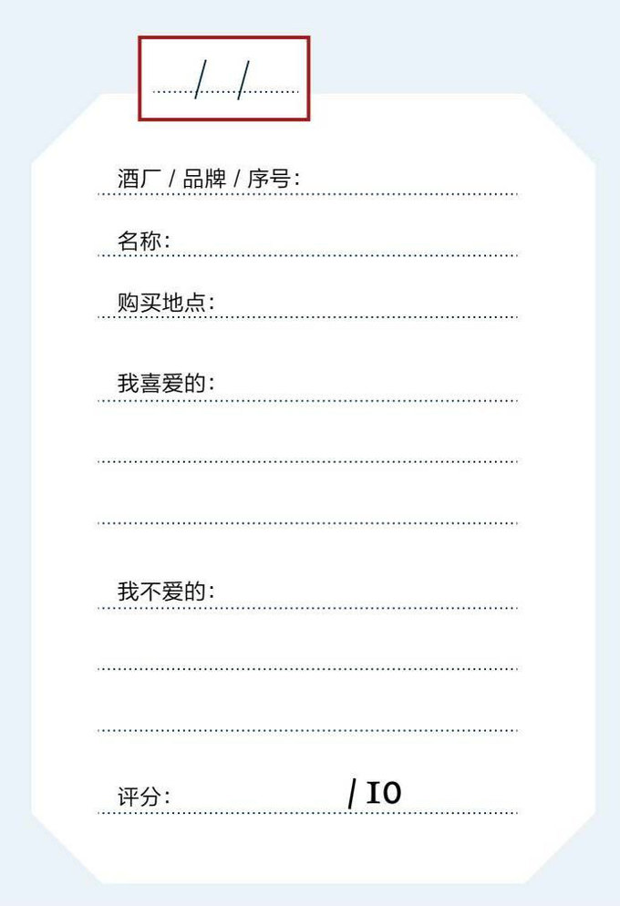 當你對酒已經駕輕就熟時,就可以將記錄做得巨細無遺。下列參考表格雖然簡單,卻已囊括所有的基本項目。