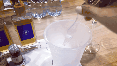 過程是這樣的:先用大拇指按住出氣口,將滴管插入水中,吸幾滴水以后滴入酒杯中——