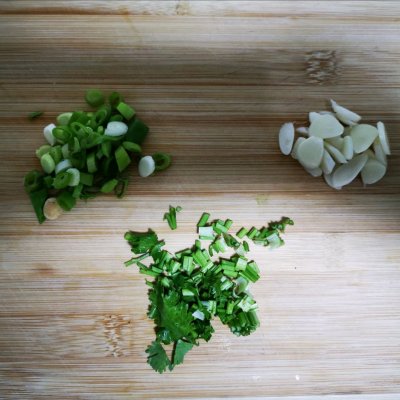8、出鍋,放入蔥末和香菜末,味道好極了,快來試一試有蒜香味的西紅柿湯吧。