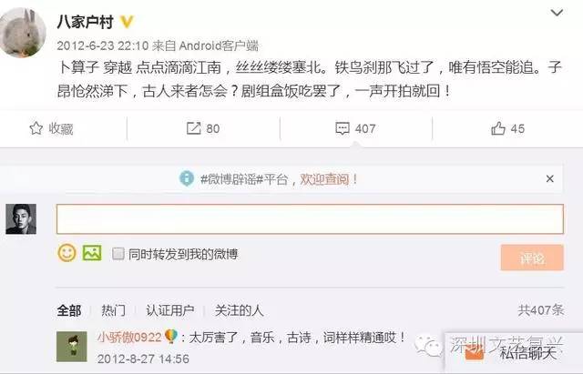 他還鼓勵大家多看電影少看微博,我感到新浪在擦汗。