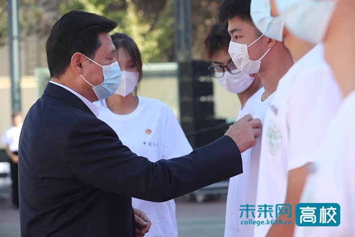 典禮上,喬東亮為新生代表佩戴校徽。