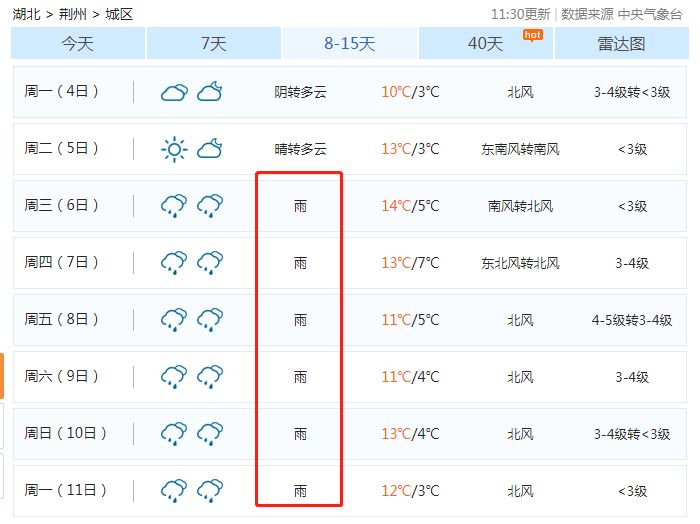 本周荊州回暖的步伐
