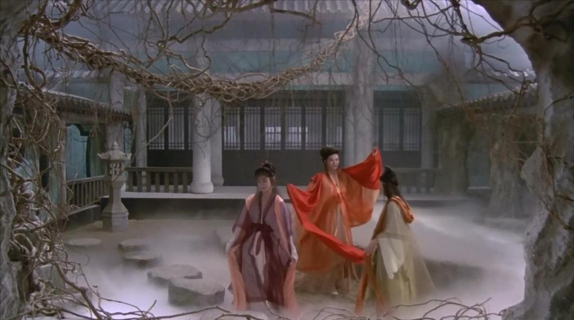 小明在和燈草和尚的談話中得知可以進入畫中,于是不顧生命危險要求和尚將他送入畫中,和尚被他的真情打動,施法將其送入畫中,小明進入畫中后對畫中的大美一見傾心,大美的演員為陳寶蓮,看電影時怎么也不敢想象這時候的陳寶蓮只有十八歲,而且具有175cm的身高,身材俱佳且皮膚白皙,說遠了,還是說回電影,小明進入畫中和大美演繹了一段無聊的劇情后,大美的姥姥出現。