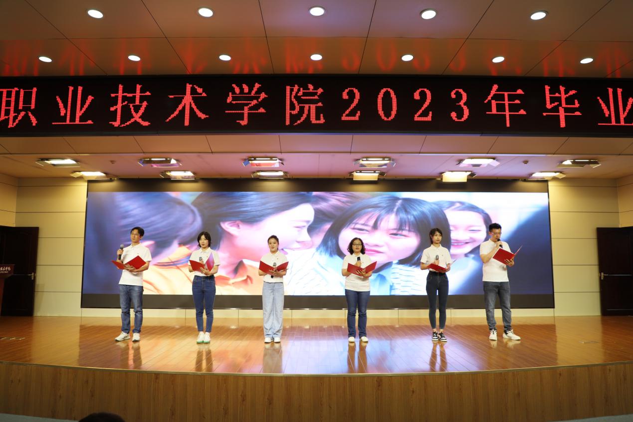 典禮暖場環節,在校學生獻歌一首,祝福2023屆畢業生畢業快樂,前程似錦。師生共同觀看畢業紀念視頻《起風了》,帶著歡笑與淚水回憶三年美好時光。