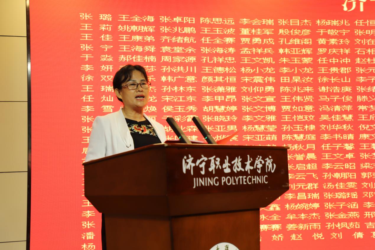 黨委委員、副院長孫志春宣讀《濟寧職業技術學院2023 屆優秀畢業生表彰決定》,通報學校省級優秀畢業生的獲獎情況。
