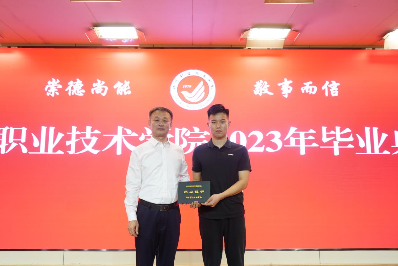 黨委書記高廣立為優秀畢業生代表頒發證書并合影留念