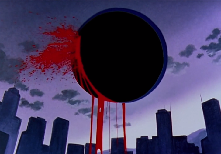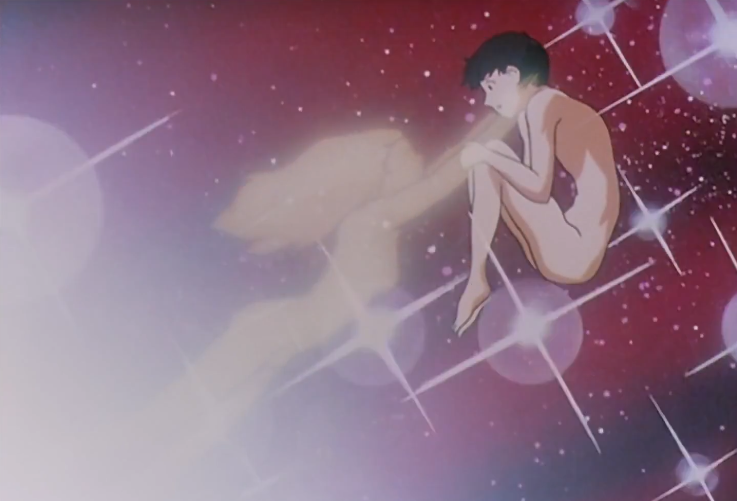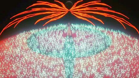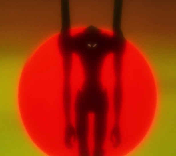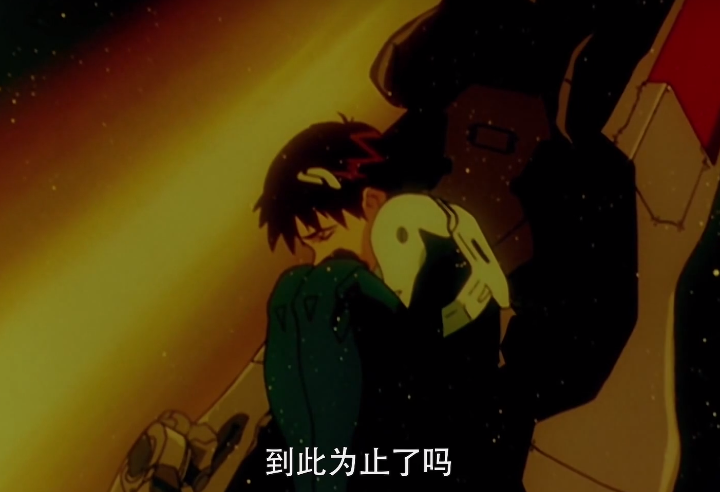男主角駕駛初號機應戰,但很快就被黑影所吞沒,吞噬了將近十六個小時,到最后,男主角的身體都已經消失不見,完全融入了黃色的LCL溶液里。