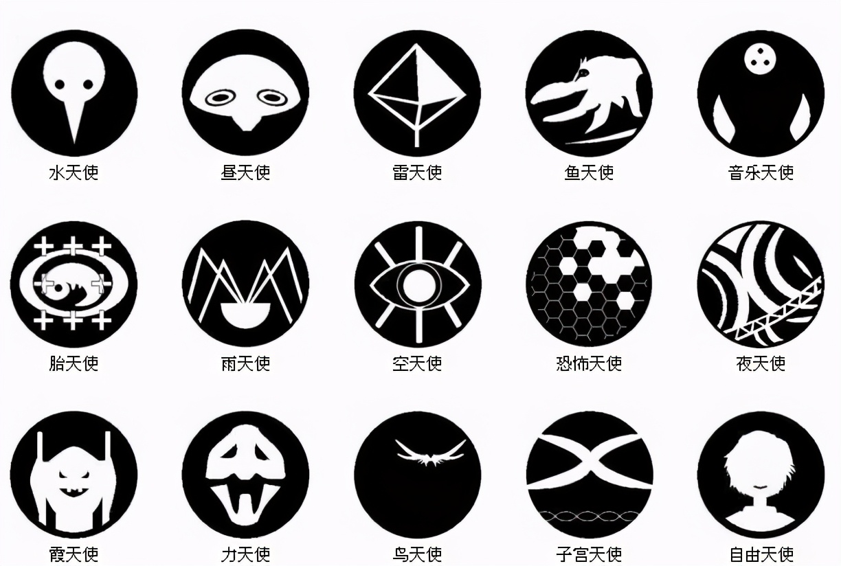 3水天使 4晝天使 5雷天使 6魚天使 7音樂天使 8胎天使 9雨天使 10空天使 11恐怖天使 12夜天使 13霰天使 14 力天使 15鳥天使 16子宮天使 17自由天使